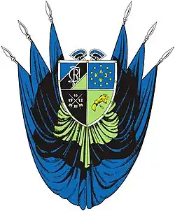 After the Soviet occupation of the country in 1944, the corporation continued its activities in exile.[1] Chapters were established in Sweden, Australia, Canada, and United States.[3][4] Korp! Rotalia USA was incorporated in the United States in 1956.[1]