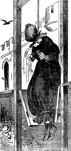 Roxana Druse was hanged on February 28, 1887, in Herkimer County. The gallows was concealed from the public, and there were only 25 official witnesses.[3] Witnesses stated that Druse did not speak on the gallows, but she "moaned, cried, and finally shrieked so loud that her voice was heard in the jail and street" as her executioners concealed her face with a cap.[1]