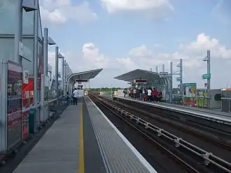 Royal Albert DLR station is a station on the Docklands Light Railway (DLR) in Beckton in east London. The station serves the western end of the north quay of the Royal Albert Dock, from which it takes its name. A view of the London City Airport is available.