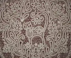 The designs of Russian lace are of abstract form. The narrow tapes or trails follow a maze-like path through deep scallops to merge again and wander into the next.[2] Examples of many regional styles and examples are available in scholarly works,[3] and instructional materials have also been published with typical stitches.[4]