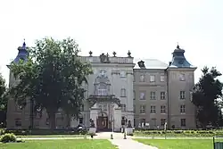It was founded at the beginning of the 15th century by Jan from Czernina, a descendant of the Wierzbno family, a knight of king Władysław II Jagiełło. Rydzyna was a private town, administratively located in the Kościan County in the Poznań Voivodeship in the Greater Poland Province of the Polish Crown.[3] At the end of the 17th century the town and its environs were owned by well-known magnates, the Leszczyński and then the Sułkowski families, whose investment in the town resulted in its current nickname as "the pearl of the Polish baroque". The 11th Polish Infantry Regiment was stationed in Rydzyna.[4]