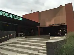 However, Roy Acuff, an Opry stalwart and a major stakeholder of Opryland USA, reportedly said, "I never want another note of music played in that building." He led the unsuccessful charge to tear down the Ryman.[18] Acuff, a staunch supporter of moving the Opry to a modern home, told The Washington Post in 1974, "Most of my memories of the Ryman Auditorium are of misery, sweating out here on this stage, the audience suffering too... We've been shackled all of my career."[17] Acuff notably hated the dressing room situation at the Ryman so much that he bought a nearby building just to have a bigger one.[17] A life-sized statue of Acuff (alongside one of Sarah Cannon as Minnie Pearl) has been installed in the lobby of the preserved Ryman Auditorium.