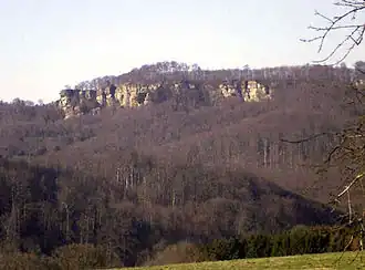 The Süntel is the eastern extension of the Wesergebirge and runs for about 12 km from northwest to southeast. It is surrounded by the valleys of the Aue, Deister-Süntel and Weser. It is also part of the Weser Uplands Schaumburg-Hamelin Nature Park and the Calenberg Uplands. The Hohenstein hill and its immediate vicinity are a nature reserve.