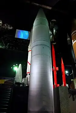 The S2 was the first deployed French land-based strategic missile, equipped with a single nuclear warhead of 120 kilotonnes. In French it is called a Sol-Sol Balistique Stratégique, (SSBS or "ground-ground strategic ballistic missile"). The S2 was a two-stage, solid-propellant medium-range ballistic missile (MRBM).[1]