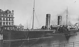 She was chartered in 1915 and was used as a troop carrier. The necessary work to fit her out was undertaken by the Steam Packet's own workshops in Douglas, and once completed her initial task was to ferry troops mainly between Southampton and the main port serving the British Expeditionary Force at Le Havre.