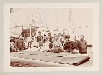 ![]() Missionaries aboard Moresby near Normanby Island, Papua New Guinea. Picture taken by Reverend George Brown in 1899. | |