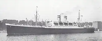 SS New York was a German passenger liner[1] launched in 1926 for the Hamburg-America Line and was the sister to the SS Albert Ballin, SS Deutschland, and SS Hamburg. During World War II the ship continued its passenger service until in 1940, the Kriegsmarine requisitioned it as a accommodation ship for the war. The ship was sunk in an air raid at Kiel in 1945.