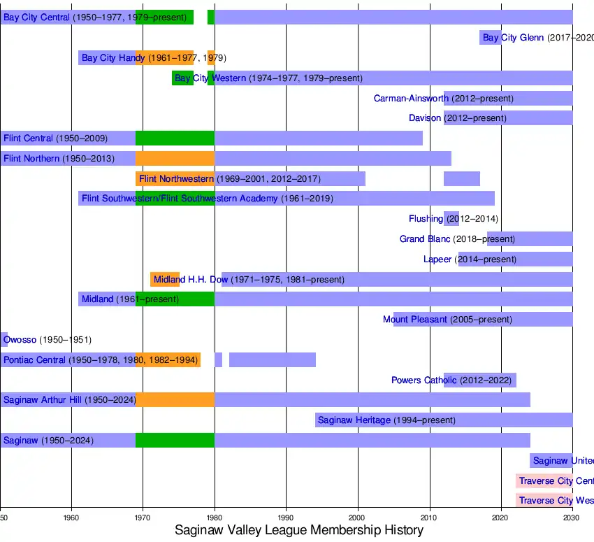 Bay City John Glenn joined in 2017, but left in 2020.[3][4] Grand Blanc joined in 2018.[5][6]