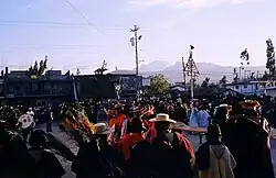 In June, Salasaca people celebrate the Inca new year festival called Inti Raymi, an ancient festival of the sun, which is celebrated in all Quechua communities of the Highlands (Sierra). In the Salasaca festival circuit, the Varayuk or Mayor, who carries a wand that represents power and authority within the community, is the main personality.