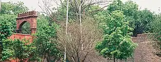 An arch bridge connects the fort to the Red Fort on its northeastern side. This bridge was built during the reign of Bahadur Shah Zafar, and the gate at this point is known as the Bahadur Shah Gate. The gate is constructed primarily of brick masonry, with selective use of red sandstone.