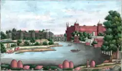 A colour painting showing Salimgarh Fort linked to Red Fort