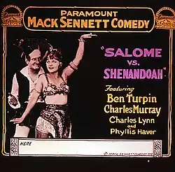 Salome vs. Shenandoah is a 1919 American silent film comedy short directed by Ray Grey, Erle C. Kenton, and Ray Hunt. It starred Ben Turpin, Charles Murray, and Phyllis Haver. It was produced by Mack Sennett and distributed by Famous Players–Lasky and Paramount Pictures.[1][2]