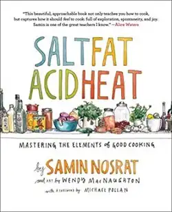 Salt Fat Acid Heat: Mastering the Elements of Good Cooking is a 2017 cookbook written by American chef Samin Nosrat and illustrated by Wendy MacNaughton. The book was designed by Alvaro Villanueva.[1] It inspired the 2018 American four-part cooking docu-series Salt Fat Acid Heat.