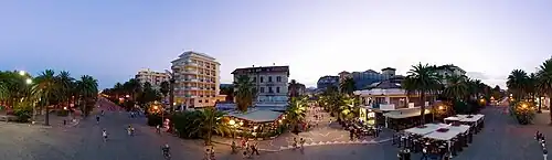 In 1931, on the project of the engineer Luigi Onorati, the promenade was built which, still today, as well as being an essential means of communication, is the center of San Benedetto.[18] Considered disproportionate at the time of construction, it has a roadway with a total width of 30 meters and starts from the Giorgini roundabout (the rotunda), at the end of the central Viale Moretti, and, in its northernmost part, for the withdrawal of the sea consequent to the continuous enlargement of the port, it is very backward compared to the sea shore. Concludes at the Salvo D'Acquisto roundabout for a total length of about 5 km.[19]