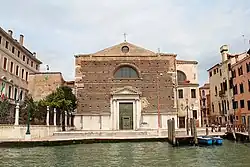 The present church was first erected in the 12th century. Major reconstruction was designed by Antonio Gaspari, and completed in 1730-1736 by Giorgio Massari. The facade was never completed. The church has a large collection of statues by Gaetano Susali, and paintings by Francesco Migliori. It has a Last Supper by Jacopo Tintoretto on the left side of the apse.