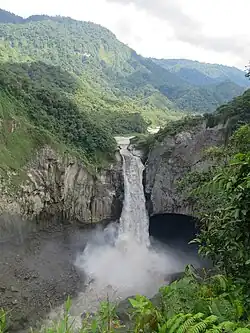 San Rafael Falls (Spanish: Salto de San Rafael) was a waterfall on the Coca River in Sucumbíos and Napo, Ecuador.[3] Standing 131 metres (430 ft) high,[1] it was the tallest and most powerful waterfall in Ecuador and a popular tourist attraction. The falls were located at the eastern boundary of Cayambe Coca National Park, in the eastern Andean foothills about 170 kilometres (110 mi) to the east of Quito.