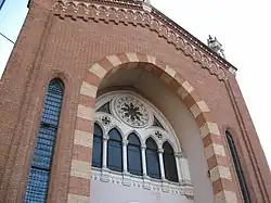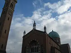 The present Sanctuary was designed under the patronage of Paduan Giovanni Battista Trevisan: his project rebuilt or enlarged the previous construction completed in 1842 in Neoclassical style. It was characterized by the imposing Corinthian portico raised on a high basement and twin bell towers, which flanked the narrow nave. The neo-Gothic sanctuary was designed (1890) by Eugenio Maestri as an extension of the previous building. The interior was completely painted in tempera by Giacomo Manzoni in collaboration with Agis Aschieri. Construction lasted till 1931 with the aid of Nino Gallimberti and Agostino Zanovello.[1]