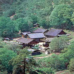 Sansa (Korean: 산사; lit. mountain temple) is a term for any Korean Buddhist temple located on a mountain. Seven of these temples are designated as UNESCO World Cultural Heritage Sites.[1] With the country being largely mountainous and Buddhism deeply rooted in its history, there are many sansas across the country.