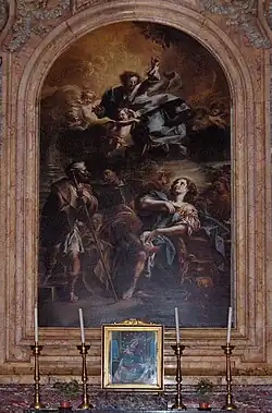 - The Chapel of the Archangel Michael is the largest chapel of this church. It was finished between 1716 and 1719 by Alessandro Speroni. The altarpiece by Giovanni Bigatti (1774–1817) is a dramatic rendering of the Archangel Michael triumphing over Satan. Next to the altar hang two paintings : St Raymond Nonnatus and St Frances of Rome. On the left wall is the funeral monument of Teresa Tognoli Canale (1807) and on the right wall the funeral monument by Lorenzo Ottoni (1658–1736) of Silvio Cavalleri († 1717), private secretary to the popes Innocent XII and Clement XI.