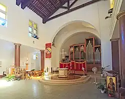 The ancient church of Santa Galla was demolished in the 1930s for the widening of Via del Teatro Marcello in the Ripa district.[1][2] The new church was built in 1940, designed by architect Tullio Rossi, and consecrated by Cardinal Ugo Poletti on the 50th anniversary of the parish foundation December 15, 1990.[1] It houses a late XVIIth century painting which was in old S. Galla.
