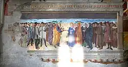 In the left-hand transept ending in a 15th-century rounded arch, before the sacristy, we can see the remains of some frescoes from the 16th century. In the right transept are chapels commissioned by various guilds.[5]