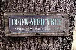 Many works big and small of the Woman's club are still visible today in Sausalito, such as the plaque on a tree from 1959 as seen in March 2023 (see picture).