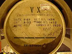 • Schedule 1[4] contains substances most clearly related to a chemical weapon. They have been specially developed for or have already been used as chemical weapons and there is a high risk that these substances or their precursors will be used for that purpose. These chemicals have little or no use for peaceful purposes in commercial or industrial activities. Examples are VX, sarin, mustard gas and the biological toxins ricin and saxitoxin.
