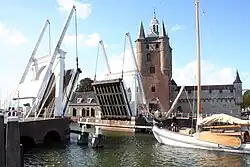 The Westenschouwen mermaid was the main character in a saga that is localized in Zeeland relating to the destruction of the village Westenschouwen on the island of Schouwen-Duiveland. The mermaid saga explains the decline of this once prosperous village. The saga predicts the demise of the village, with only the tower remaining. After the tower was demolished in 1845, the Plompe Tower was seen as the remaining tower of Westenschouwen. Plompe Tower is open to tourists and when you open the door of the tower the story of the mermaid will be played automatically and displayed via a carousel stories. The mermaid is celebrated in the local coat of arms.[9][10][11]