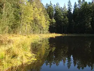 The Schurmsee is a tarn that lies at a height of 794 metres in the municipality of Forbach in the Northern Black Forest in Germany. It is located on a line between Hundsbach and Schönmünzach. The lake covers an area of 1.6 hectares and is up to 13 metres deep. Its volume is about 180,000 cubic metres. An area of 7.8 hectares, including the tarn and its shore areas, was established as a nature reserve in 1985. Around this reserve, a protected landscape has been declared. The woods on the mountainsides around the lake have also been designated as a Schonwald (protected forest). The lake and its surrounds are a geotope. In addition, the tarn and its environs are a Habitats Directive protected and a bird reserve conforming to the European nature conservation act, Natura 2000.
