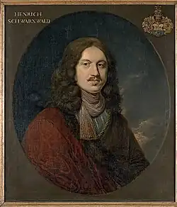 Heinrich V Schwarzwald (1642–1705), nephew of Heinrich IV, studied at Leiden University, 1663, councillor, 1691, married in 1677, Maria von Heemskirk (1648–1711).[1] His portrait, Portrait of Heinrich Schwarzwaldt (1642-1705), counsellor of Gdańsk, dated 1682, by Andreas Stech is displayed in the National Museum, Gdańsk.[18]