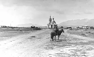Trade in Chuya was an economic activity aimed at the purchase and sale of goods from the First and Second Chui Volosts and merchants from Russia, China and Tuva. Trade was carried out on the territory of the Second Chui Volost, and Kosh-Agach was built up with warehouses of Russian merchants.[45] Thanks to the active trade in Chuya, the Chuisky tract appeared.[10] Trade with China began thanks to the annual religious processions of the Derbets and the Mongol army. Cross-border trade between Russia and China was prohibited until the 1860s, but residents of the Second Chui Volost could freely trade with China and Russia.[46] Russian merchants have been trading with Second Chui Volost since the middle of the 18th century, making huge profits from trading with the residents of Chuya.[10]