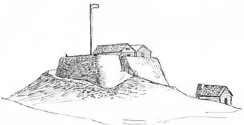 Three weeks later, on 30 April 1864, the measure of devotion to the Hauhau movement displayed itself in the reckless march by 200 warriors on the Sentry Hill redoubt, 9 km north-east of New Plymouth, in a one-sided battle that cost the lives of possibly a fifth of the Māori force. The redoubt had been built in late 1863 by Captain W. B. Messenger and 120 men of the Military Settlers on the crown of a hill that was the site of an ancient pā, and garrisoned by a detachment of 75 men from the 57th Regiment under Captain Shortt, with two Coehorn mortars. The construction of the outpost was regarded by the Atiawa as a challenge, being built close to the Māori position at Manutahi and on their land. In April 1864 a war party was formed of the best fighting men from the west coast iwi that had joined the rapidly spreading Hauhau movement.[18] In a 1920 interview with historian James Cowan, Te Kahu-Pukoro, a fighter who took part in the attack, explained: "The Pai-marire religion was then new, and we were all completely under its influence and firmly believed in the teaching of Te Ua and his apostles. Hepanaia Kapewhiti was at the head of the war-party. He was our prophet. He taught us the Pai-marire karakia (chant), and told us that if we repeated it as we went into battle the Pākehā bullets would not strike us. This we all believed."[18]