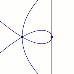 as the polar equation (in and ) if the origin is shifted to the right by . Note that this is the earlier equation with a change of parameters; this to be expected from the fact that two poles are interchangeable in the construction of the curve.