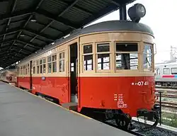 Following the success of the first six petrol railcars, Sentetsu put another 21 into service in the next two years, with the Gyeongseong Works delivering eleven (numbered 15 through 25) in 1931 and ten more in 1932 (numbered 26 through 35). These were also powered by the Waukesha 6RB engine and seated 100, but they were shorter than the first six cars. The passenger compartment was heated by hot water pipes connected to a boiler in the goods compartment. They were equipped with both air and hand brakes, and the air compressor had a multiple V-belt drive. Driving cabs were located at both ends of the railcar.[1] It is not known what their new numbers and classification became in Sentetsu's 1938 general renumbering, but some eventually were numbered in the 70-79 range.[2]
