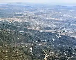 The USACE began an ambitious effort to improve levees and dams on the Santa Ana River system known as the Santa Ana River Mainstem Project.[4] Among the works proposed under the project were an expansion of the massive Prado Dam, which despite filling to capacity did not fully prevent heavy flooding damages in Orange County,[5] and the construction of the $530 million "Mentone Dam" across the Santa Ana north of Mentone in San Bernardino County.[6] However, the Mentone Dam site was controversial because it would affect groundwater recharge, was aesthetically unpleasing and lay on unstable sediment deposits directly above the San Andreas Fault.[6] In response to public opposition, the USACE replaced the Mentone proposal with the $304 million Upper Santa Ana River Dam, later to be called Seven Oaks Dam, in a bedrock canyon one mile (1.6 km) upstream in the southern San Bernardino Mountains.[7]