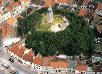 Charny was killed in 1356 at the Battle of Poitiers, when the French royal army was defeated by a smaller Anglo-Gascon force commanded by Edward's son, the Black Prince, and John was captured.[37] In 1360, the Treaty of Brétigny ended the war, with vast areas of France being ceded to England; including Guînes and its county which became part of the Pale of Calais.[38] The castle was besieged by the French in 1436 and 1514, but was relieved each time.[39] Guînes remained in English hands until it was recaptured by the French in 1558.[11]