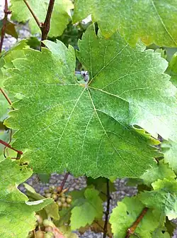 Siegerrebe (German pronunciation: [ˈziːɡɐˌʁeːbə] ⓘ, lit. 'Victory vine') is a white wine grape that is grown primarily in Germany with some plantings in England, Vancouver Island,[1] Washington state,[2] British Columbia's North Okanagan and Fraser Valley[3] and Nova Scotia's Annapolis Valley along with a small planting in Tasmania, Australia at Every Man and His Dog Vineyard,[4] and another in the Finger Lakes AVA in New York State.[5] Siegerrebe was created by German viticulturalist Dr. Georg Scheu (1879–1949) in 1929 at a grape-breeding institute in Alzey in Rheinhessen, by crossing Madeleine Angevine and Gewürztraminer.[6][7] However, Georg Scheu's son Heinz Scheu has claimed in a book that Siegerrebe was the result of self-pollination of Madeleine Angevine.[7] Siegerrebe received varietal protection and was released for general cultivation in Germany in 1958.[7]