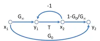 - ^ Fakhfakh, Mourad; Tlelo-Cuautle, Esteban; V. Fernández, Francisco (2012). "Section 4.1.2 Signal flow graphs algebra". In Fakhfakh (ed.). Design of Analog Circuits Through Symbolic Analysis. Bentham Science Publishers. p. 418. ISBN 978-1-60805-425-1.