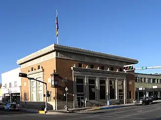 Within its boundaries of Black, College, Hudson, and Spring streets are located thirty-eight contributing properties, spread out over an area of 88 acres (36 ha).[1] The properties include some of Silver City's most significant commercial, government, religious, and residential buildings. The commercial area is mainly located along Broadway and Bullard Street; most of the commercial buildings are two-story brick structures, and many feature cast iron storefronts. The Grant County Courthouse, which was designed and built in 1930, is located at the end of Broadway. The houses in the district are also mainly brick, a locally abundant building material; they represent a variety of architectural styles, including a number of Second Empire works. Five churches are included in the district; these include Gothic Revival and Mission Revival designs.[2]