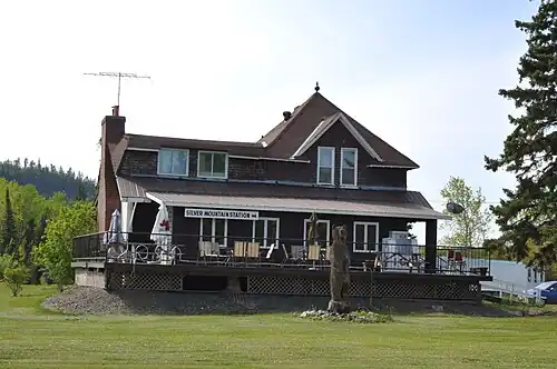 The Silver Mountain station is a historic railway station located in the Thunder Bay District, Ontario. It sits at the intersection of Highway 588 and Highway 593. Now operated as a restaurant, it was constructed in 1907 as a major station along the Port Arthur, Duluth and Western Railway. It is also currently home to the Silver Mountain and Area Historical Society.