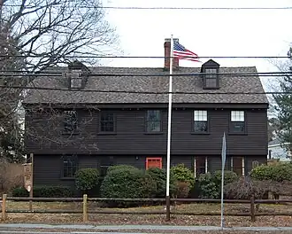 The John Humphreys House, also known as Sir John Humphreys House, is a historic house museum located in Swampscott, Massachusetts. Although it was long thought to be associated with John Humphrey, an early deputy governor of the Massachusetts Bay Colony, it was more likely built about 1700, based on architectural analysis. In 1641 Deborah Moody bought the Humphrey house (which he called Swampscott) and 900 acres when the Humphreys returned to England giving her over 1300 acres of what would become Swampscott, Massachusetts.[2] The house was originally located on what is now Elmwood Road (a plaque marks the site), but moved to its current location in 1891 as the Olmsted district was developed.[3] It is currently owned by the Swampscott Historical Society. It was listed on the National Register of Historic Places in 1990.[1]