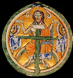 - Winchester Bible image of the Ages of the World, illustrated within the opening letter "I" of the book of Genesis.