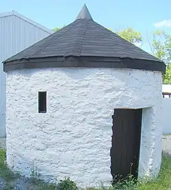 A smokehouse (North American) or smokery (British) is a building where meat or fish is cured with smoke. The finished product might be stored in the building, sometimes for a year or more.[1] Even when smoke is not used, such a building—typically a subsidiary building—is sometimes referred to as a "smokehouse". When smoke is not used, the term meathouse or meat house is common.
