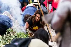 Smoke and fire have been traditionally used by Indigenous Australians as a form of communication.[10] Individuals light a fire when entering another group's country, signalling their entry to the people who live there, and acting as a call for help when necessary.[10] In the 21st century, smoking ceremonies have become a more frequent occurrence as part of Welcome to Country ceremonies.[11] Welcome to Country ceremonies are part of reconciliation as they acknowledge the traditional ownership of the land and involve Aboriginal Australians in events that take place on their land.[11] Smoking ceremonies are performed by Indigenous elders and community members in an event open to the non-Indigenous Australian public, as opposed to the closed ceremonies performed within a community. While smoking ceremonies are not a universal element of Indigenous cultures, they have been performed across the country by a number of different community elders.[11]