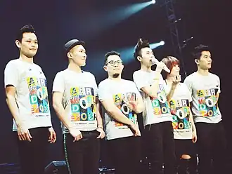 ![]() Sodagreen in 2014. From left to right: A-Fu, A-Gong, Wei, Qing-feng, Claire, Kay | |||||||
