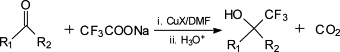 - ^ Chang, Ying; Cai, Chun (June 2005). "Trifluoromethylation of carbonyl compounds with sodium trifluoroacetate". Journal of Fluorine Chemistry. 126 (6): 937–940. doi:10.1016/j.jfluchem.2005.04.012.