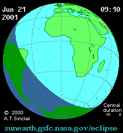 - ^ "Total Solar Eclipse of 2001 Jun 21". EclipseWise.com. Retrieved 11 August 2024.