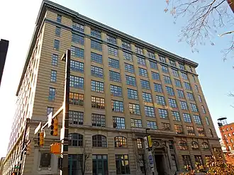 Sonneborn Building, also known as Paca-Pratt Building, is a historic loft building in Baltimore, Maryland, United States. Designed by Theodore Wells Pietsch, it is a nine-story loft building constructed in 1905 of "fireproof" reinforced-concrete construction, faced in buff-colored brick, with a coursed ashlar foundation and stone trim. Its detailing reflects the Neoclassical Revival of the early 20th century. It was built for Henry Sonneborn and Company as a vertical clothing manufactory and was the tallest and largest strictly manufacturing building in the city of Baltimore.[2]