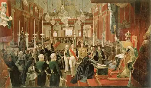 Later in 1836, while Brazil was experiencing the chaos of the regency, Rio Grande do Sul proclaimed its independence motivated by a tax crisis. With the anticipation of the coronation of Pedro II to the throne of Brazil, the country could stabilize and fight the separatists, which the province of Santa Catarina had joined in 1839. The Conflict came to an end by a process of compromise by which both Riograndense Republic and Juliana Republic were reincorporated as provinces in 1845.[30][31]