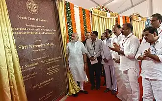 - ^ "Modi lays foundation stone for new Manoharabad-Kothapalli Railway line".